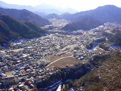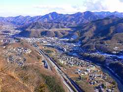 山頂よりも こちらの公園の方が広くて眺めが良く、眼下に大月市街が広がっていて