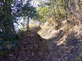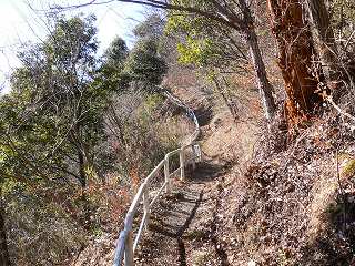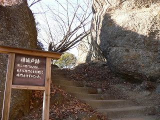 山頂の西にある大露頭の破砕撤去跡と楊城戸跡の所から正面の登山道を下りて、ふれあい