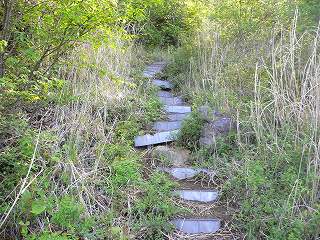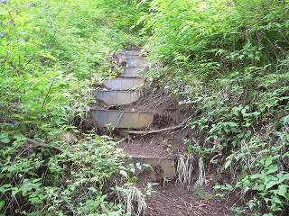 ___(登山道に作られた階段)__________(ここに咲いてたチゴユリ)