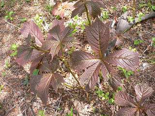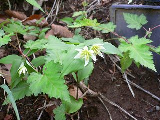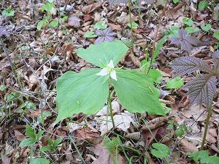 ____(ミヤマエンレイソウ)________(葉を広げたばかりのヤグルマソウ)