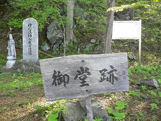 上人堂跡には数体の石仏と座禅岩や皇太子殿下御登頂の看板と共に、妙心法師が