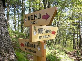 紅葉台から10分歩いた所にある峰宮跡の分岐で三輪神社からの登山道と合わせます。