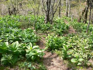 (南斜面に群生するコバイケイソウ)
