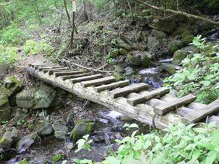 __(登山口の上にある丸太橋)___________(傾斜の緩い登山道)