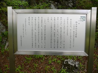 登山口から10分登った所にある竜の口に 由来が書かれた案内板とベンチがあって、側に